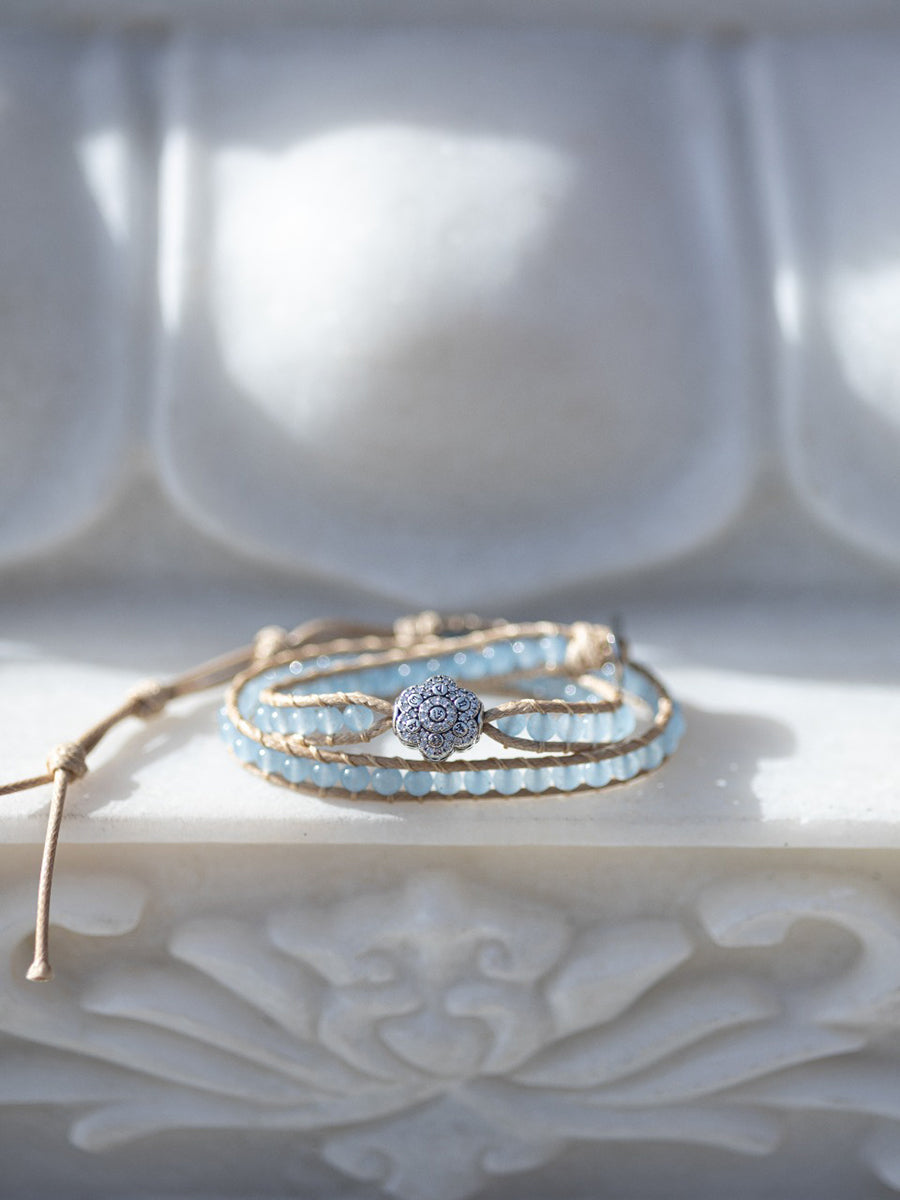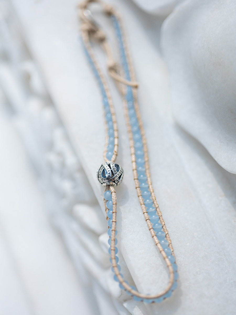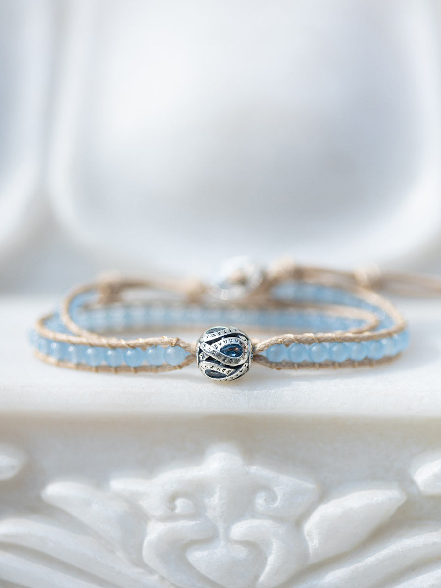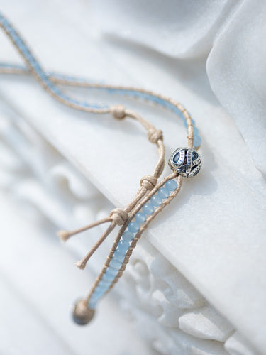 Aquamarine Hundred Syllables Mantra Braided Bracelet