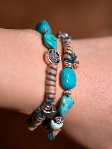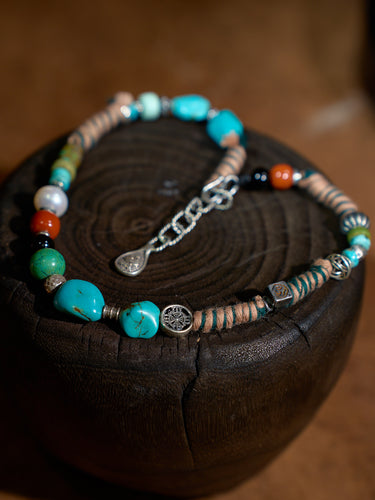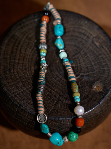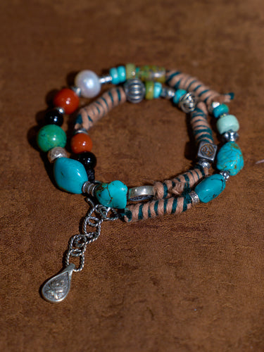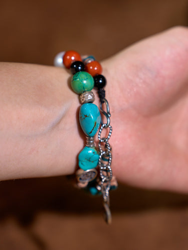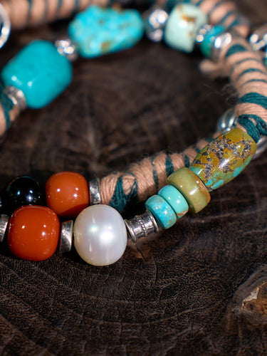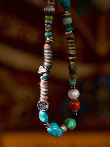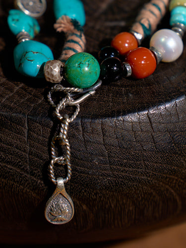 Blessing Harmony Bracelet with Turquoise, Agate, Black Crystal, and Pearl – A Himalayan Talisman of Protection