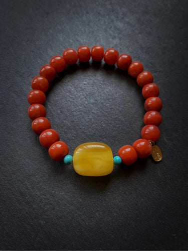 Carnelian and Amber Bracelet with Turquoise Accents – A Himalayan Charm of Good Fortune