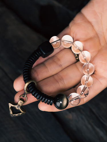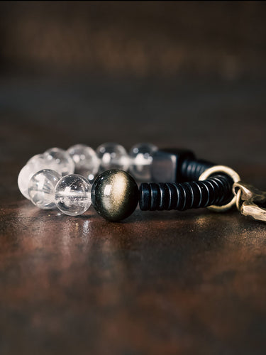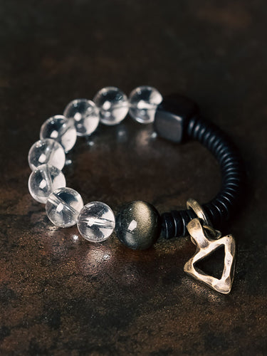 Crystal & Obsidian Harmony Bracelet with Ebony and Brass