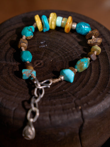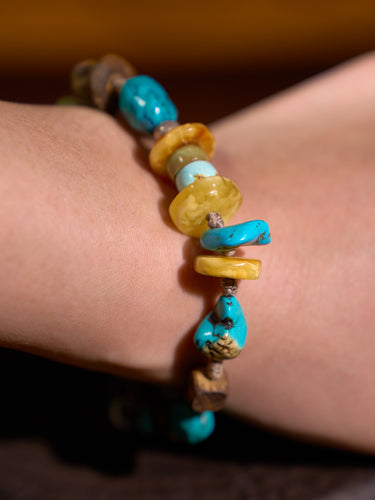 Fortune Harmony Bracelet with Turquoise, Amber, and Agarwood – A Himalayan Talisman of Good Luck