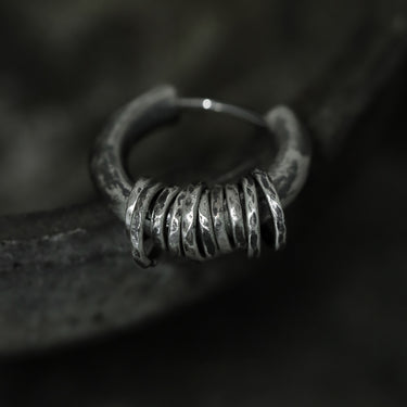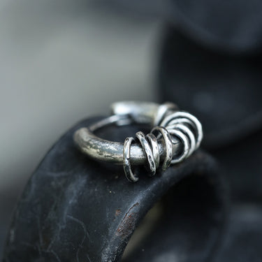 Embodying the essence of wealth and elegance, these sterling silver earrings are designed with a unique spiral motif, symbolizing the infinite cycle of growth and prosperity. Each ring is meticulously handcrafted, showcasing a textured finish that blends raw beauty with refined craftsmanship. Lightweight and durable, these earrings are perfect for everyday wear, offering both comfort and style while imbuing the wearer with a sense of individuality and energy.