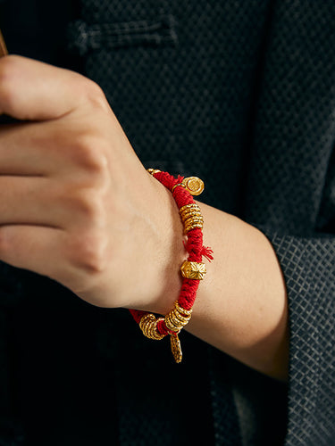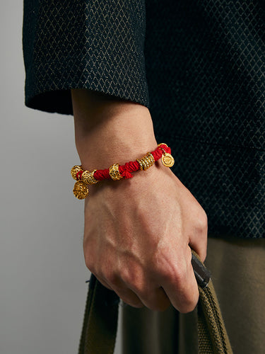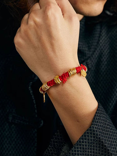 Wealth Attracting Lucky Coin Golden Guardian Red Cord Bracelet