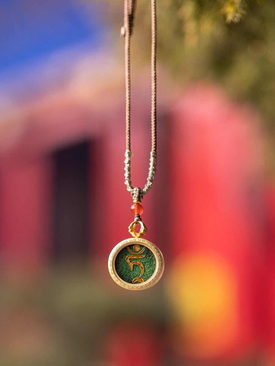 Green Tara Seed Syllable Cloisonné Enamel Pendant