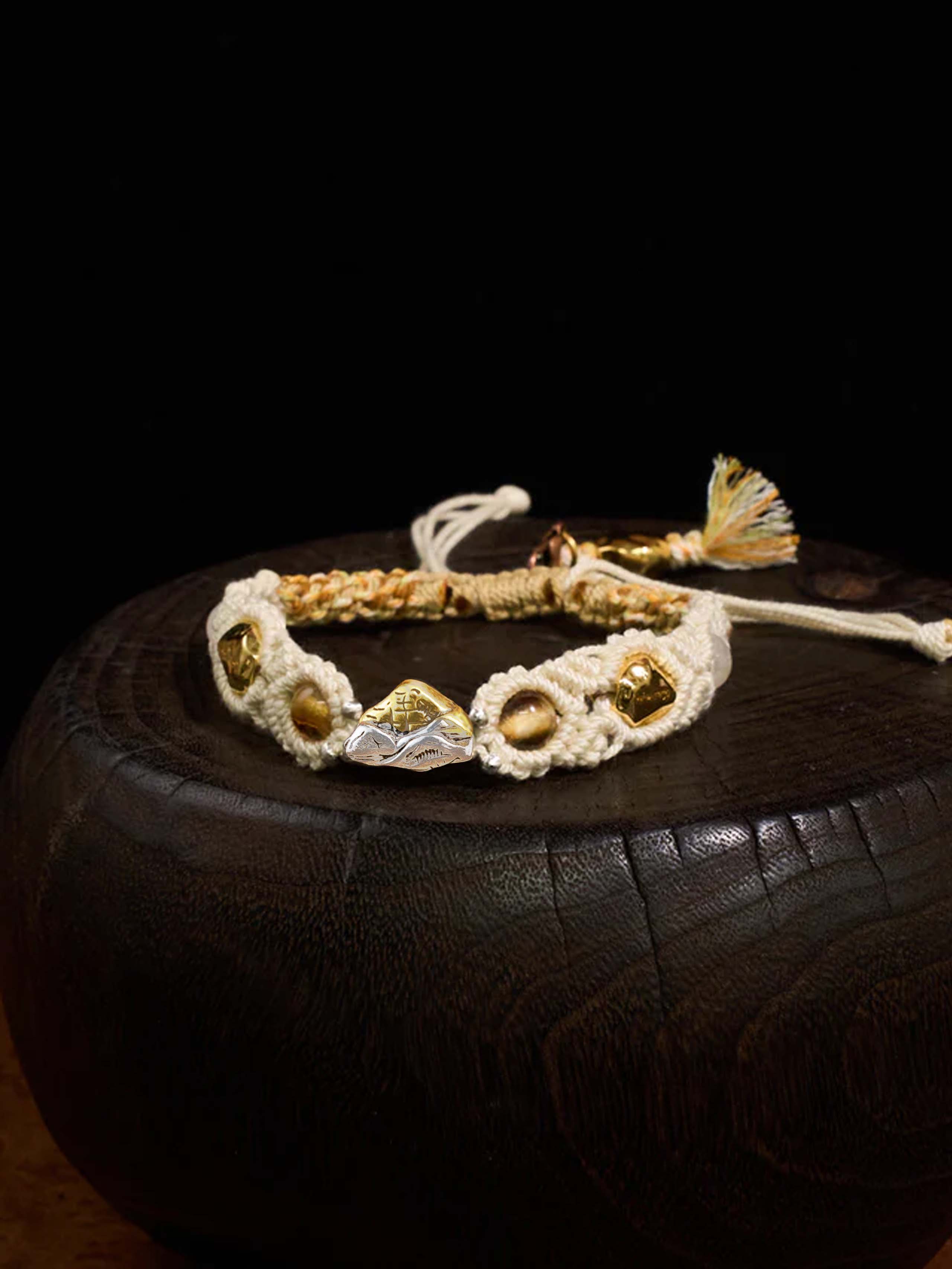 Material: Tibetan-style cotton thread, copper-gilded/silver, citrines.