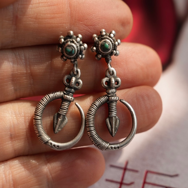 Immerse yourself in the mysticism of Tibetan heritage with these Mystic Guardian Turquoise Sterling Silver Earrings. Handcrafted from pure sterling silver, these unique earrings feature intricate spiritual symbols combined with genuine turquoise gemstones. Turquoise has long been revered as a stone of protection, believed to bring balance, tranquility, and safeguard its wearer from negative energies. The crescent-shaped design symbolizes the eternal cycle of life, while the ornate detailing reflects the sacred craftsmanship of Tibetan artisans.