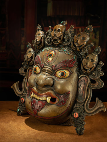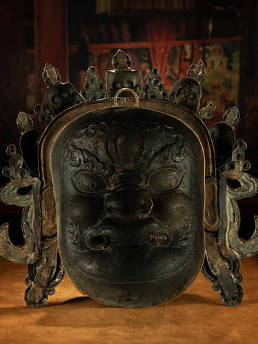 Qing Dynasty Style Mahakala Face Tibetan Large-Scale Hammered Wall Hanging