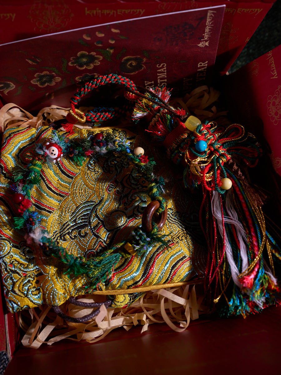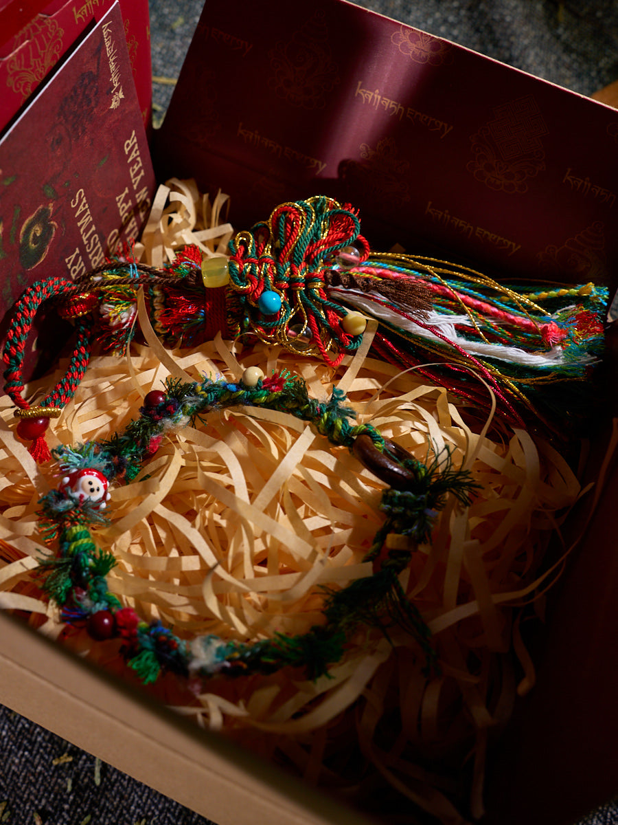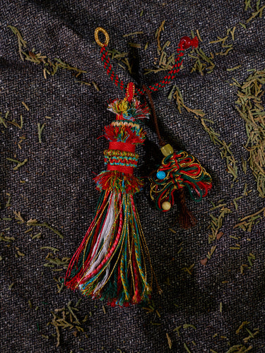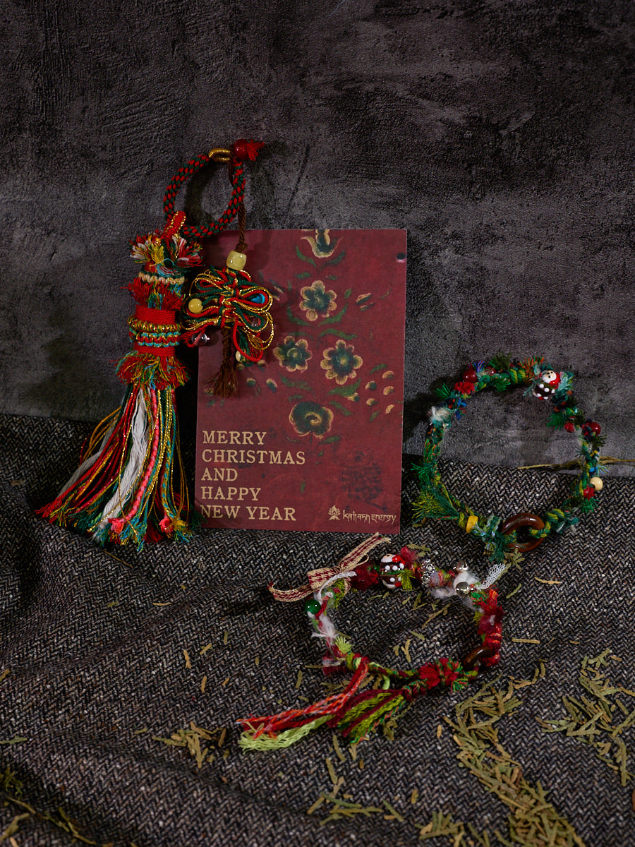 Tibetan-Inspired Christmas Bag Charm - Boho Festive Tree & Tassel