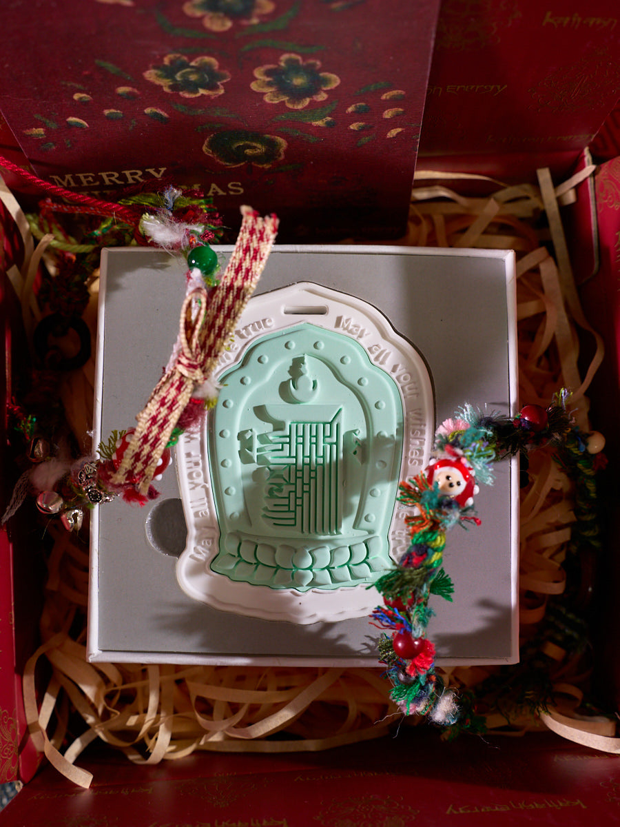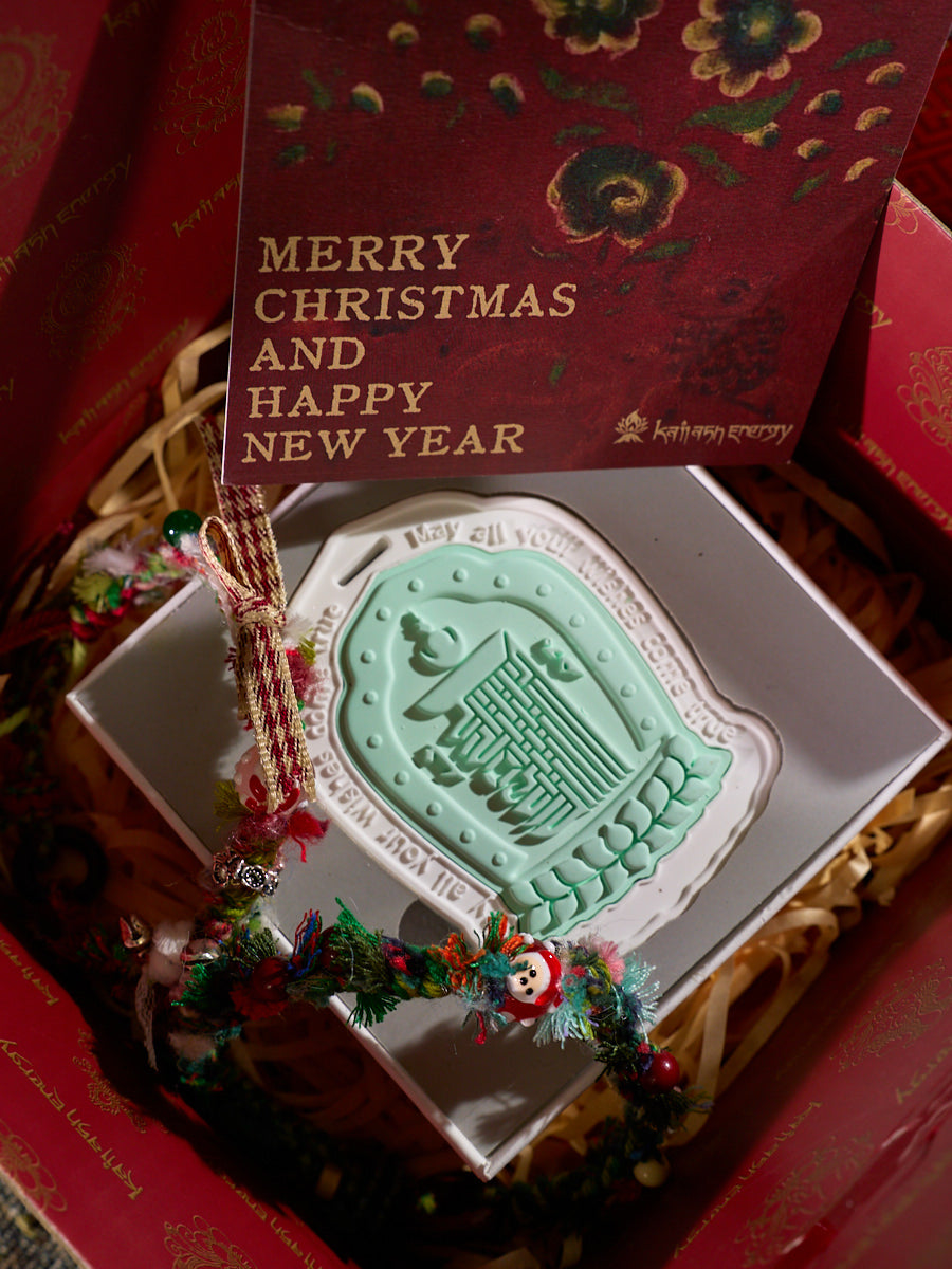 The Kalachakra Forest Plaque in soft green, emitting an earthy forest scent that brings the calm of nature indoors.