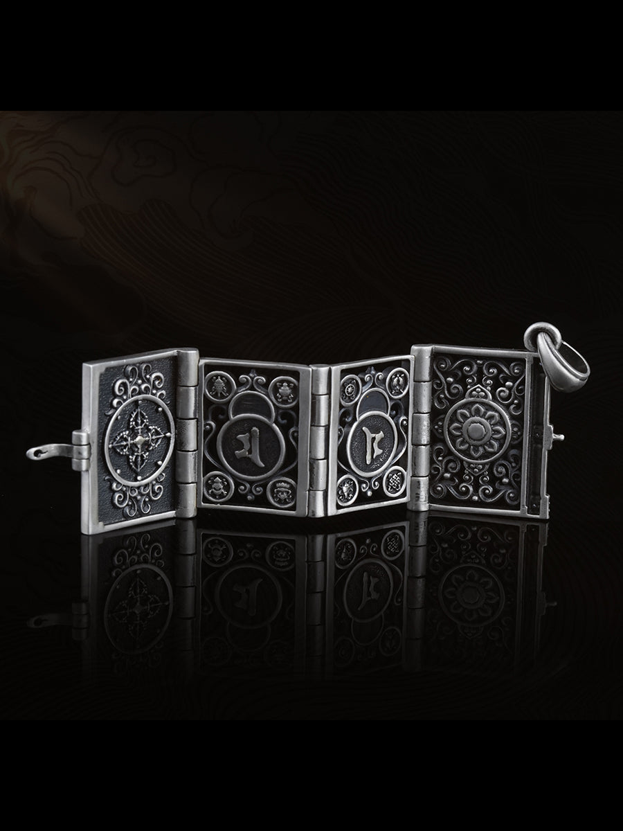 The Buddhist Scripture Silver Pendant represents the sacred teachings and wisdom of the Buddha, serving as a symbol of enlightenment, inner clarity, and divine protection. Its folding scripture design mirrors the purity and depth of spiritual practice, offering guidance and peace to the wearer. In Tibetan tradition, such scripture pendants are believed to carry blessings that dispel confusion, calm emotions, and attract positive energy. Handcrafted from sterling silver, each detail conveys reverence and tranquility, creating a powerful amulet for mindfulness, balance, and spiritual harmony in daily life.