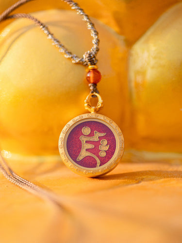 Yellow Jambhala Seed Syllable Cloisonné Enamel Pendant